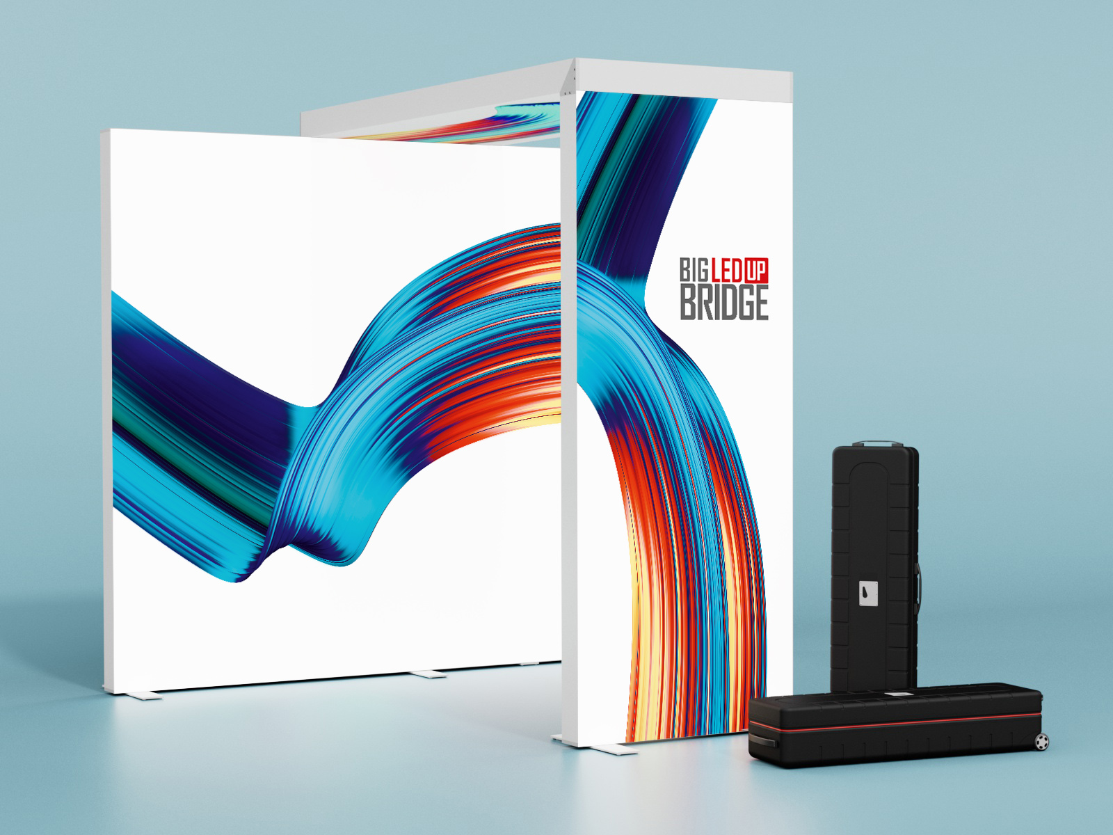 Die BIG LEDUP® Bridge ist eine innovative Lösung zur Verbindung eines freistehenden Rahmens (Breite: 100cm; Höhe: wahlweise 200cm, 230cm, 248cm oder 298cm) mit einem bestehenden BIG LEDUP® System. Dies erfolgt über einen oben liegenden Brückenrahmen mit ebenfalls 100cm Breite und einer Brückenlänge von 200cm, 230cm, 248cm oder 298cm.