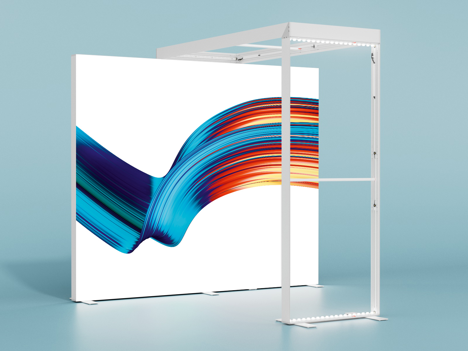 Dank des patentierten Verbindungssystems gleiten die präzise gefertigten Aluminiumprofile mühelos ineinander und sorgen für eine zuverlässige Verbindung sowie einen stabilen und eleganten Leuchtrahmen. Der Rahmen kann zudem digitale Drucke mit angenähten Silikonkeder an den Rändern aufnehmen – einfach, faltenfrei und unkompliziert.