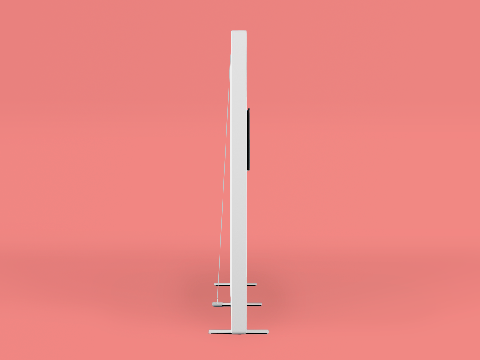 Der TV Tense dient als Stabilisierungselement, das effektiv ein Kippen oder eine Instabilität verhindert, die durch das Gewicht schwerer TV-Bildschirme entstehen kann. Durch die sichere Befestigung des TV Tense an der Rahmenstruktur in Kombination mit verstellbarer Kabelspannung schützen Sie Ihre wertvollen Displays vor unerwarteten Verschiebungen oder Bewegungen.