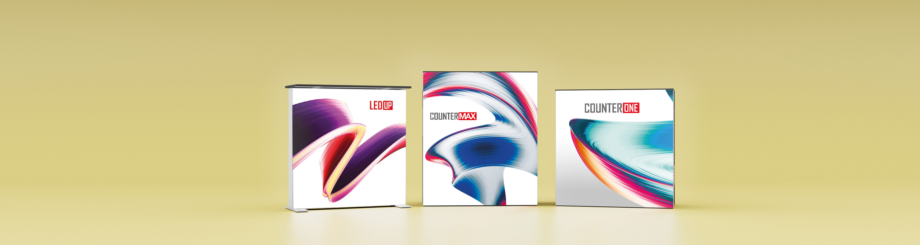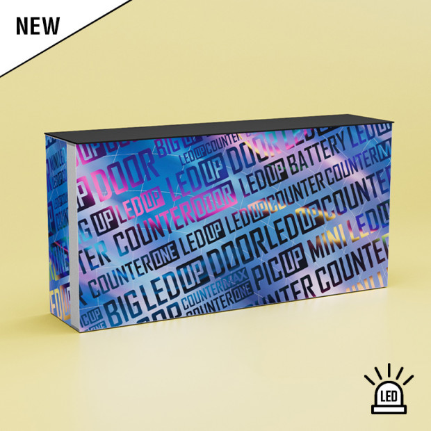 Der COUNTER MAX ist eine mobile Theke mit einer LED-beleuchteten Vorderseite (100 x 116 cm) und einem Ablagefach auf der Rückseite. Der COUNTER MAX hat im Gegensatz zum COUNTER ONE eine erhöhte Vorderwand um eine klarere Abtrennung zu erhalten. Hochwertige Aluminiumkomponente in Kombination mit einer lebendigen und gleichmäßigen Beleuchtung machen diese Einheit unverzichtbar für all Ihre Ausstellungen. Darüber hinaus ist sie dank des robusten ABS-Transportkoffers einfach zu transportieren.