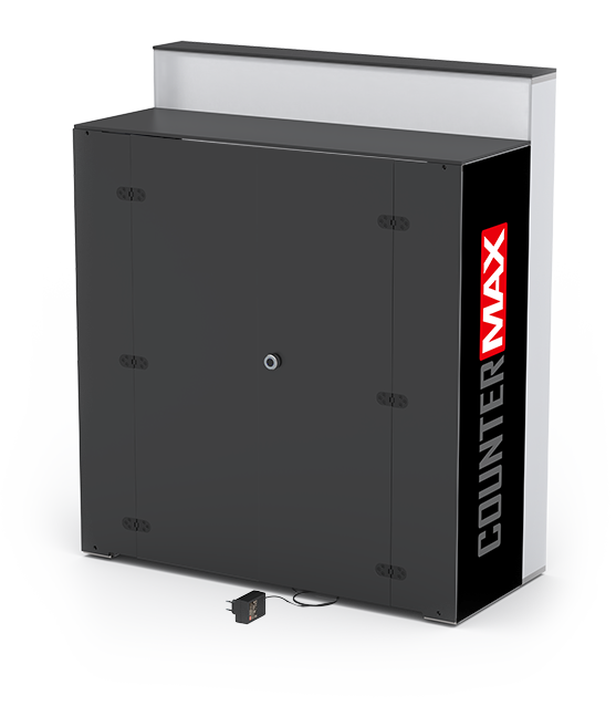 Auf Wunsch kann der COUNTER MAX mit Türen bestellt werden, die per Fingerabdruck verschlossen werden können. Dadurch können Ihre Wertsachen sicher verstaut und vor neugierigen Blicken geschützt werden. Die Türen werden in einem zusätzlichen Transportkoffer geliefert.