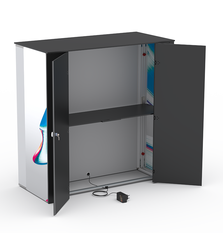 Der frei stehende COUNTER ONE Black ist die perfekte Lösung für Ausstellungen, Messen, Promotionen usw.