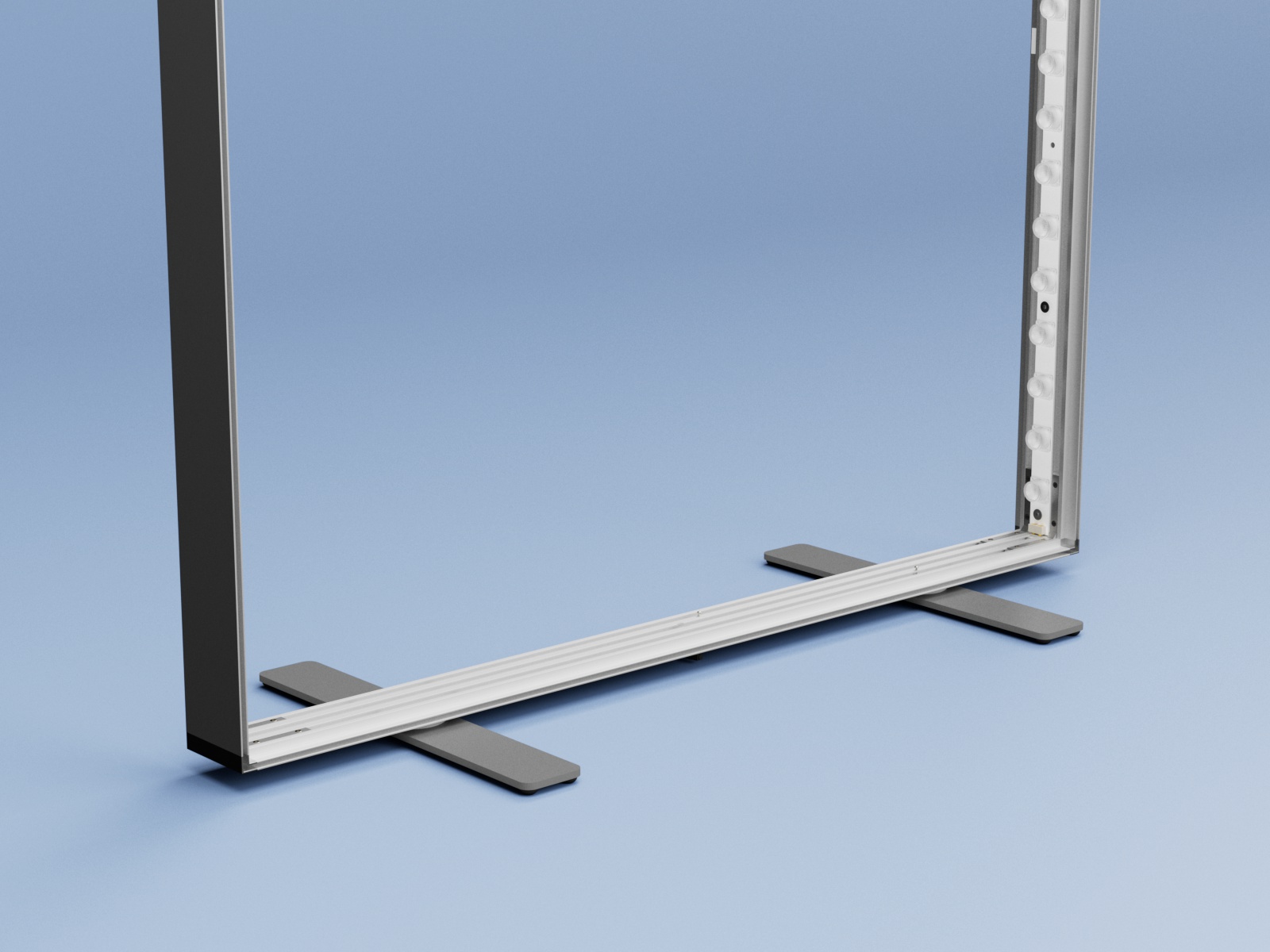 Ein Profil – Profiltiefe 80 mm – wird für dieses Display-Rahmensystem verwendet. LEDUP® besteht aus hochwertigem, UV-beständigem, eloxiertem Aluminium. Das Design und die Form sind schlank und zeitlos elegant.