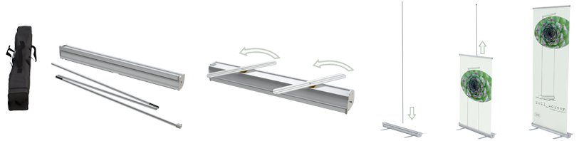 Das Rollscreen-System wird in einer Transporttasche geliefert, einzeln verpackt in einem Karton.