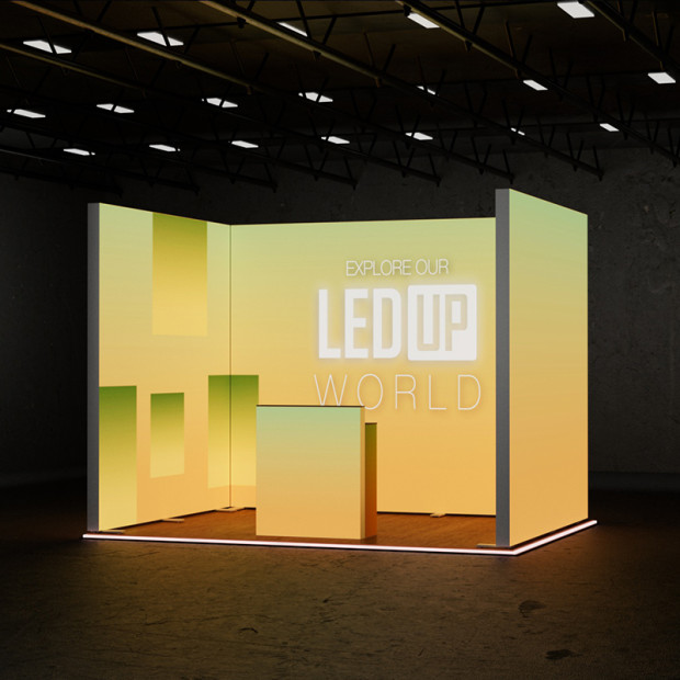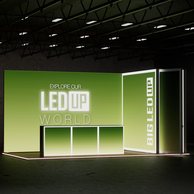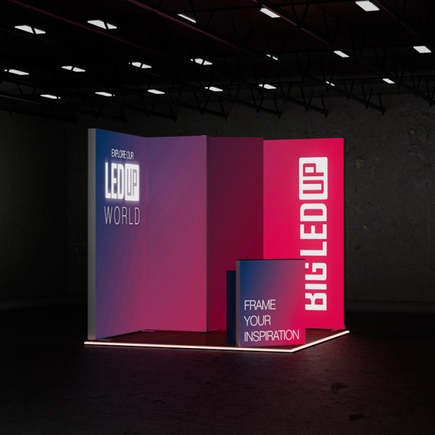 Dieses Set ist mit einer Grundfläche von 5x4 m und einer Höhe von 298 cm, sowie zwei Counter MAX und einer Koje, ist die für diejenigen gedacht, die einen beeindruckenden und professionellen Messestand benötigen. Dieses modulare Set bietet maximale Flexibilität und ermöglicht es Ihnen, den Aufbau an Ihre spezifischen Event-Anforderungen anzupassen. Ob für Messen, Konferenzen oder jede andere Promotion-Veranstaltung – das BIG LEDUP Set 5x3 LENNON sorgt dafür, dass Ihre Marke durch Klarheit und Stil hervorsticht.
