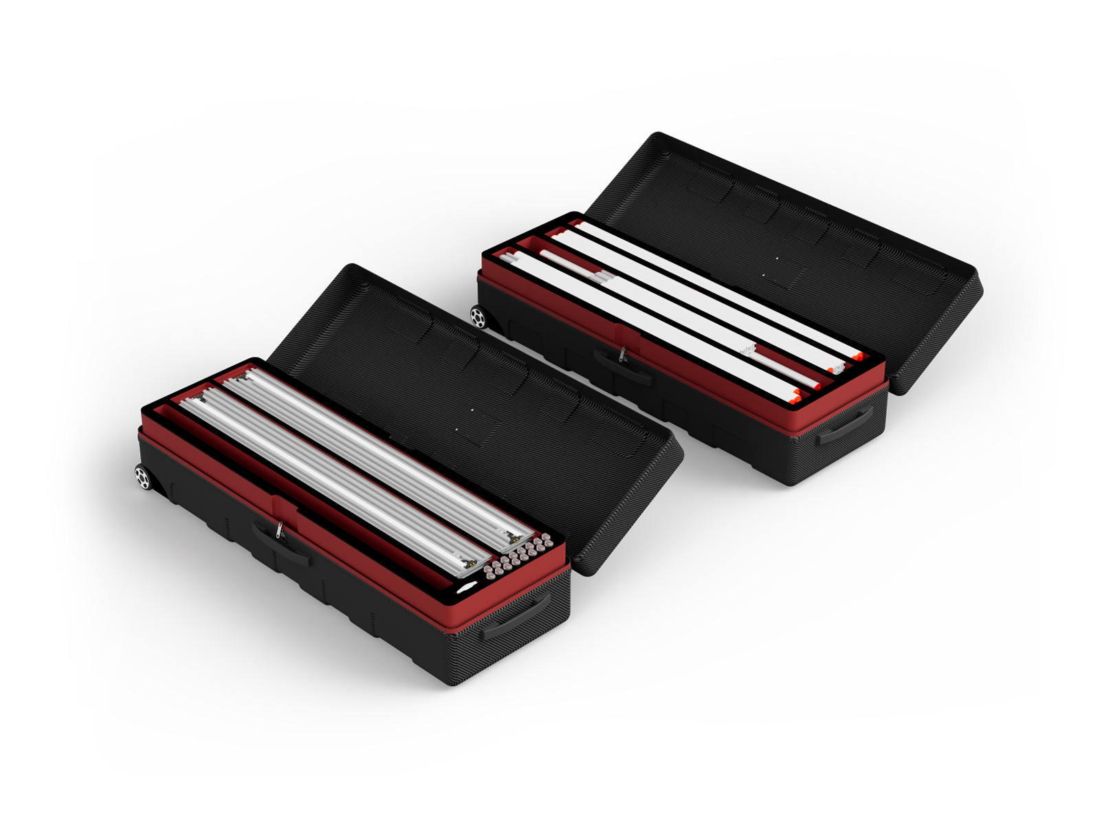 The REAL BIG LEDUP® comes packed in two handy ABS hard-shell cases, making transport easy and efficient. Each component is clearly numbered and protected with foam inserts to ensure everything stays in place. Thanks to the integrated wheels and handles, the cases are easy to move.