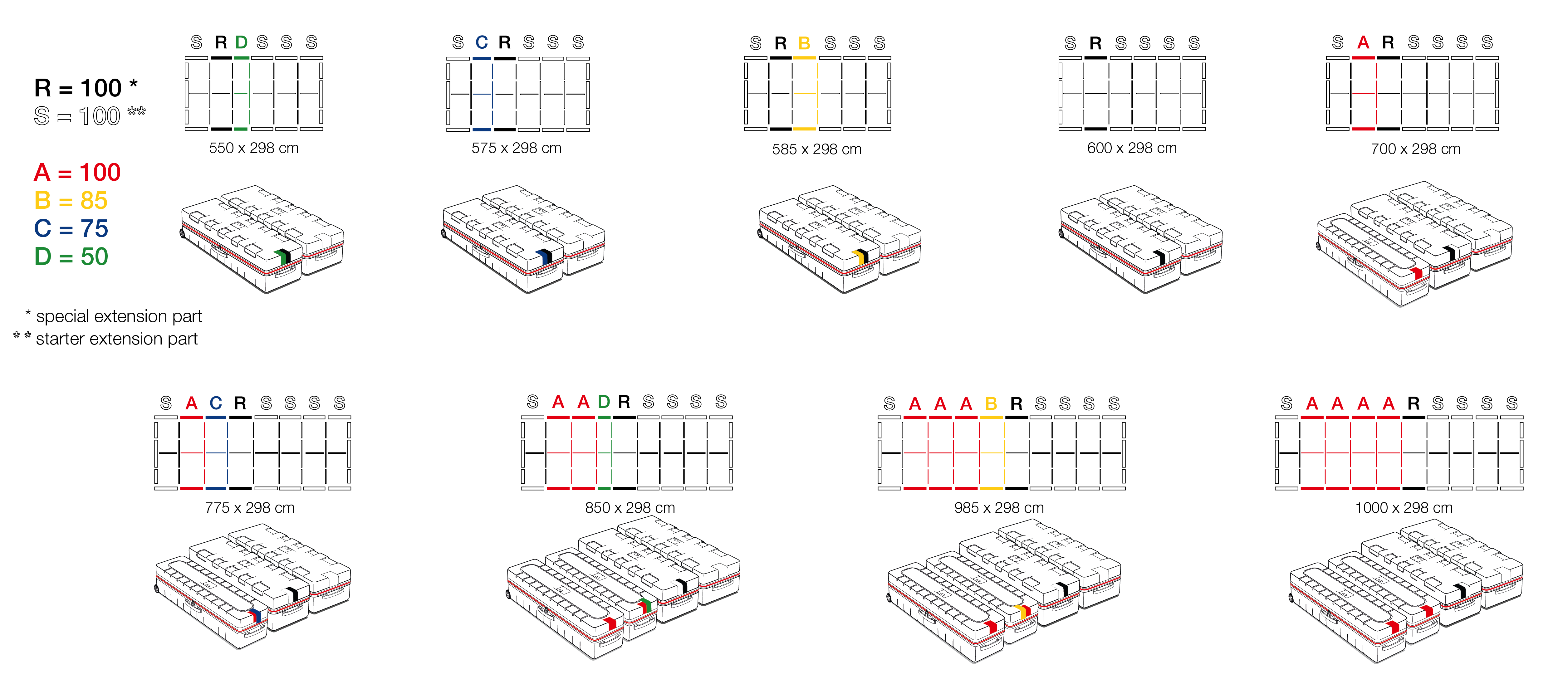 Explore the modular flexibility of REAL BIG LEDUP®, designed to adapt to any space. Expand your system to a maximum width of 1000 cm using 50, 75, or 100 cm wide add-on modules. Choose from different heights of 200, 230, 248, or 298 cm. Simply connect the add-on modules between two starter modules, and enjoy a tool-free assembly for your custom setup!