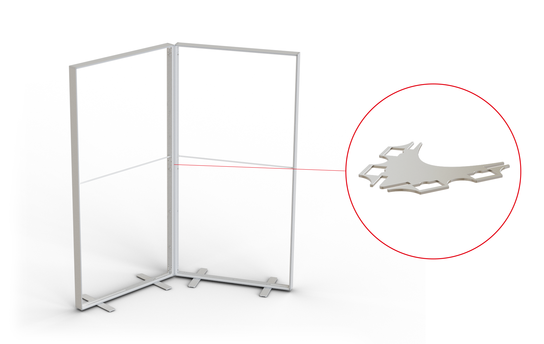 With the system connector 90 degrees stable corner solutions can be created covering the right system.