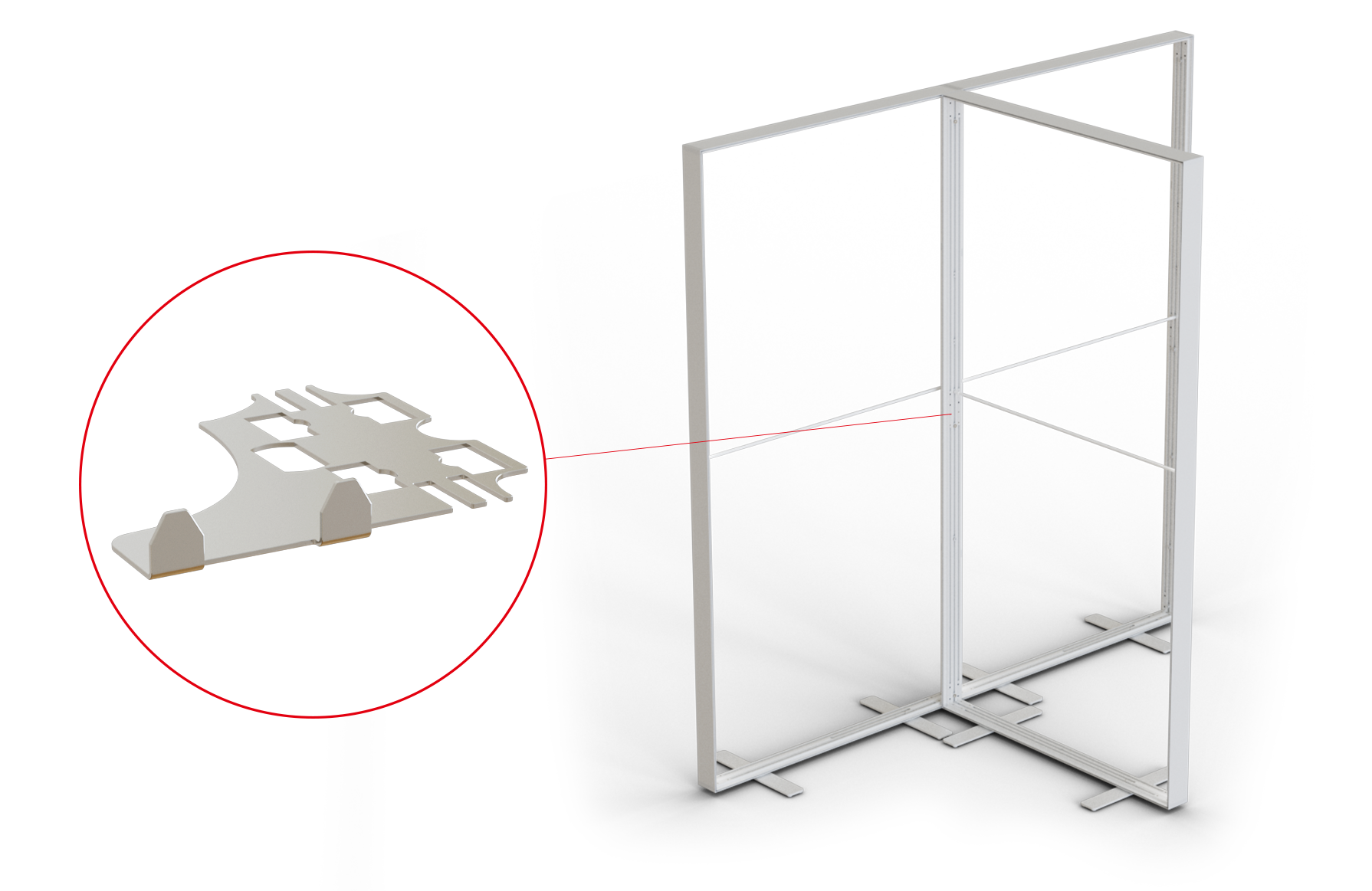 With the system connector, 90 degrees stable corner solutions can be created covering the left system.